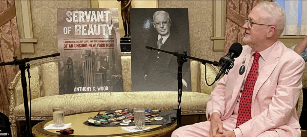 New York audiences at Village Preservation, Victorian Society New York, FRIENDS of the Upper East Side Historic Districts, and at the Museum of the City of New York have seen in Bard the type of civic activist New York City needs today. In conversations with Michelle Young, Joe Rose, Bob Jaeger, Emily Kahn, and Ronda Wist, author Anthony Wood has lifted up Bard’s legacy. The archival journey behind Wood’s Servant of Beauty: Landmarks, Secret Love, and the Unimagined Life of an Unsung New York Hero, the definitive biography of Albert S. Bard (1866- 1963), has also inspired audiences about, and increased their appreciation of, the work of the New York Preservation Archive Project in securing the archives that future authors writing about preservation in New York City will need.